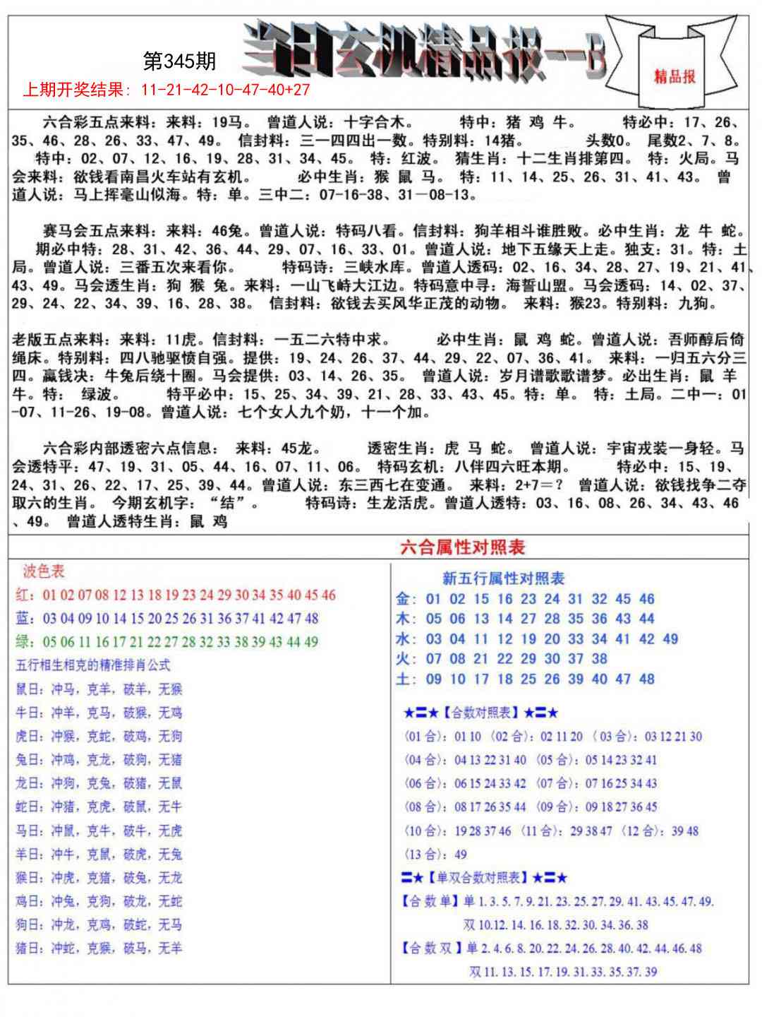 345期当日玄机精品报B[图]
